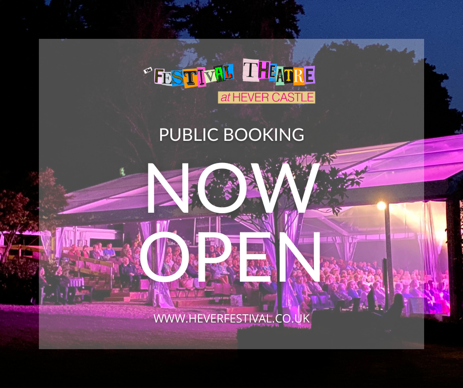 The Festival Theatre events run throughout the year in our gorgeous locations at: Hever Castle – including our flagship stunning theatre re-built in 2024, Chiddingstone Castle and Penshurst Place & Gardens.